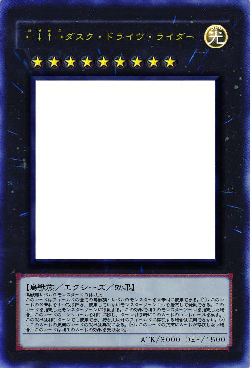 | 鳥獣族レベル9モンスター×3体以上 このカードはフィールドの全ての鳥獣族・レベル9モンスターをX素材に使用できる。①:このカードのX素材を1つ取り除き、使用していないモンスターゾーン1つを指定して発動できる。このカードを指定したモンスターゾーンに移動する。この効果で相手のモンスターゾーンを指定した場合、このカードのコントロールを相手に移し、ターン終了時にこのカードのコントロールを戻す。この効果は相手ターンでも使用でき、持ち主以外のフィールドに存在する場合は使用できない。②:このカードの正面のカードの効果は無効になる。③:このカードの正面にカードが存在しない場合、このカードは相手のカードの効果を受けない。 | |||