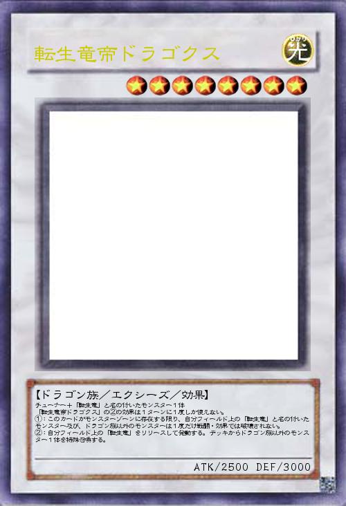 | チューナー+「転生竜」と名の付いたモンスター1体 「転生竜帝ドラゴクス」の②の効果は1ターンに1度しか使えない。 ①:このカードがモンスターゾーンに存在する限り、自分フィールド上の「転生竜」と名の付いたモンスター及び、ドラゴン族以外のモンスターは1度だけ戦闘・効果では破壊されない。 ②:自分フィールド上の「転生竜」をリリースして発動する。デッキからドラゴン族以外のモンスター1体を特殊召喚する。 | |||