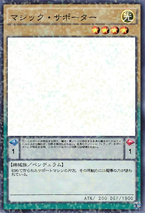 | ①:このカードが存在する限り、魔法・罠ゾーンに存在する自身の魔法カードはフィールド上から離れず、効果を無効化されない。自身のPゾーンに「トラップ・サポーター」が存在する時、このカードはカード効果では破壊されない。 | |||