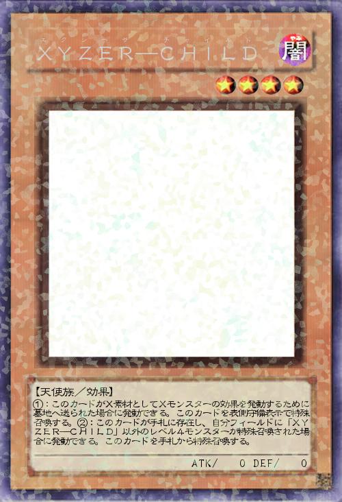 | ①:このカードがX素材としてXモンスターの効果を発動するために墓地へ送られた場合に発動できる。このカードを表側守備表示で特殊召喚する。②:このカードが手札に存在し、自分フィールドに「XYZER―CHILD」以外のレベル4モンスターが特殊召喚された場合に発動できる。このカードを手札から特殊召喚する。 | |||