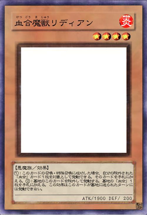 「そういえばこいつだけ強制効果じゃない感じです。除外された血合を再利用できます。血合も魔獣も除外して発動する効果があるのでどんどん除外されそうな気がします。ATKも高いのでアタッカーとして使いながら、ついでに効果も使えたらぐらいで。」(2015-09-12 00:15)