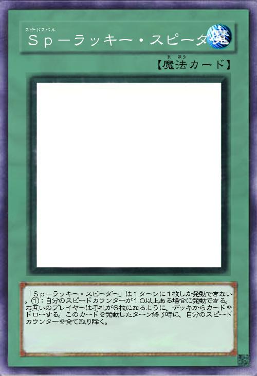 | 「Sp-ラッキー・スピーダー」は1ターンに1枚しか発動できない。①:自分のスピードカウンターが10以上ある場合に発動できる。お互いのプレイヤーは手札が6枚になるように、デッキからカードをドローする。このカードを発動したターン終了時に、自分のスピードカウンターを全て取り除く。 | |||