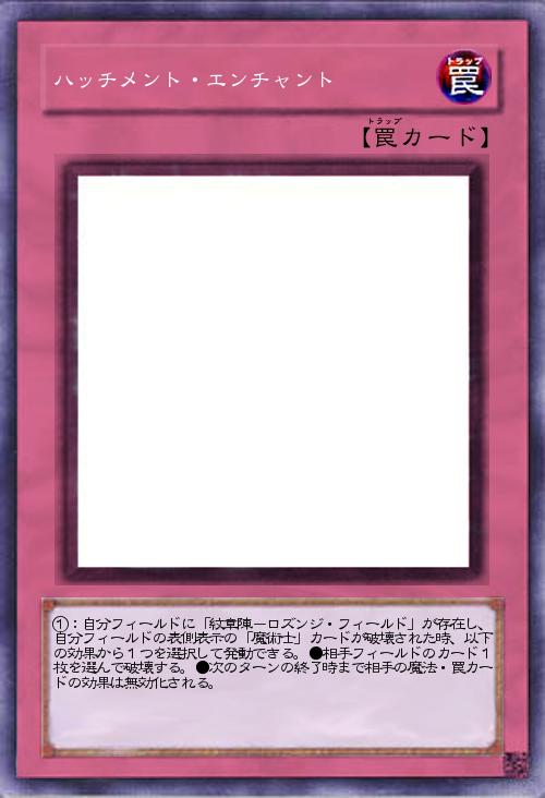 「ハッチメント」とは、紋章学において死者の成就を示す特別な紋章の事です。この紋章は男女問わずロズンジの形で作られます(Wikipedia参照)。このカードの発動条件はここからきています。」(2015-09-21 10:12)