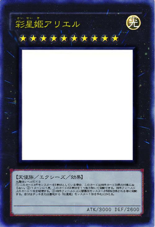 | 光属性レベル10×3 ①:このカードがPモンスターをX素材としている場合、このカードは相手カード効果の対象にならない。②:1ターンに1度、このカードのX素材を1つ取り除いて発動できる。相手フィールド上のカード1枚を破壊する。③:相手フィールド上に闇属性モンスターが特殊召喚される毎に発動する。自分はデッキまたは墓地から「彩星姫」モンスター1体を手札に加える。 | |||