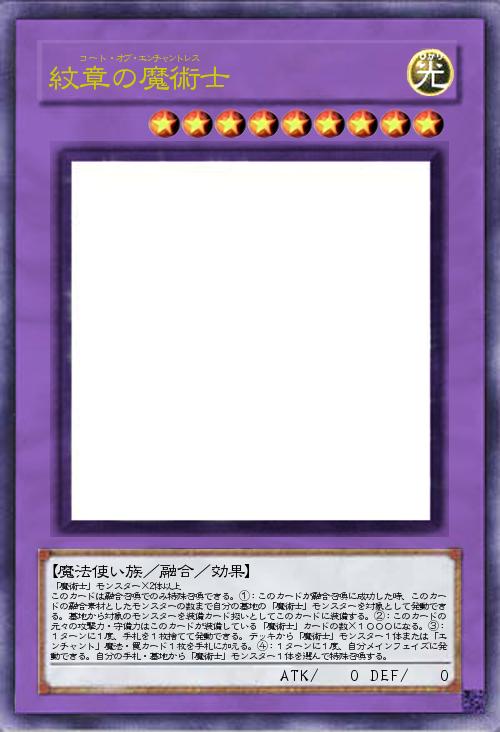 | 「魔術士」モンスター×2体以上 このカードは融合召喚でのみ特殊召喚できる。①:このカードが融合召喚に成功した時、このカードの融合素材としたモンスターの数まで自分の墓地の「魔術士」モンスターを対象として発動できる。墓地から対象のモンスターを装備カード扱いとしてこのカードに装備する。②:このカードの元々の攻撃力・守備力はこのカードが装備している「魔術士」カードの数×1000になる。③:1ターンに1度、手札を1枚捨てて発動できる。デッキから「魔術士」モンスター1体または「エンチャント」魔法・罠カード1枚を手札に加える。④:1ターンに1度、自分メインフェイズに発動できる。自分の手札・墓地から「魔術士」モンスター1体を選んで特殊召喚する。 | |||