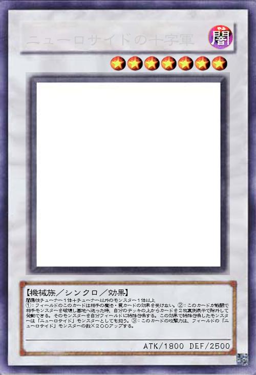 | 闇属性チューナー1体+チューナー以外のモンスター1体以上 ①:フィールドのこのカードは相手の魔法・罠カードの効果を受けない。②:このカードが戦闘で相手モンスターを破壊し墓地へ送った時、自分のデッキの上からカードを2枚裏側表示で除外して発動できる。そのモンスターを自分フィールドに特殊召喚する。この効果で特殊召喚したモンスターは「ニューロサイド」モンスターとしても扱う。③:このカードの攻撃力は、フィールドの「ニューロサイド」モンスターの数×200アップする。 | |||