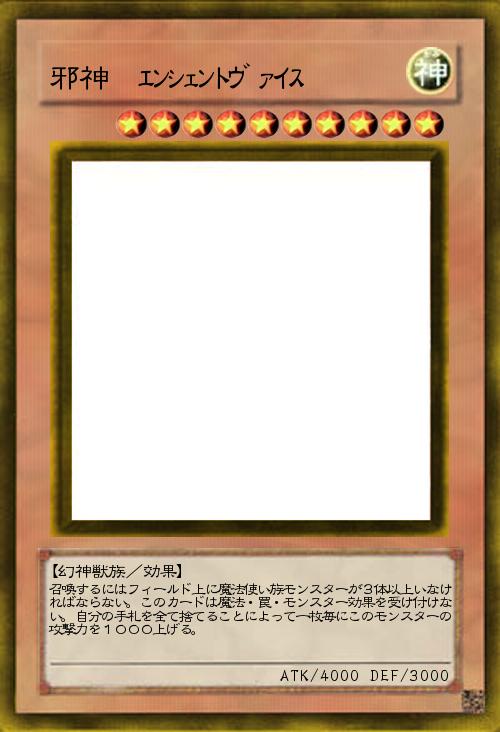 | 召喚するにはフィールド上に魔法使い族モンスターが3体以上いなければならない。このカードは魔法・罠・モンスター効果を受け付けない。自分の手札を全て捨てることによって一枚毎にこのモンスターの攻撃力を1000上げる。 | |||