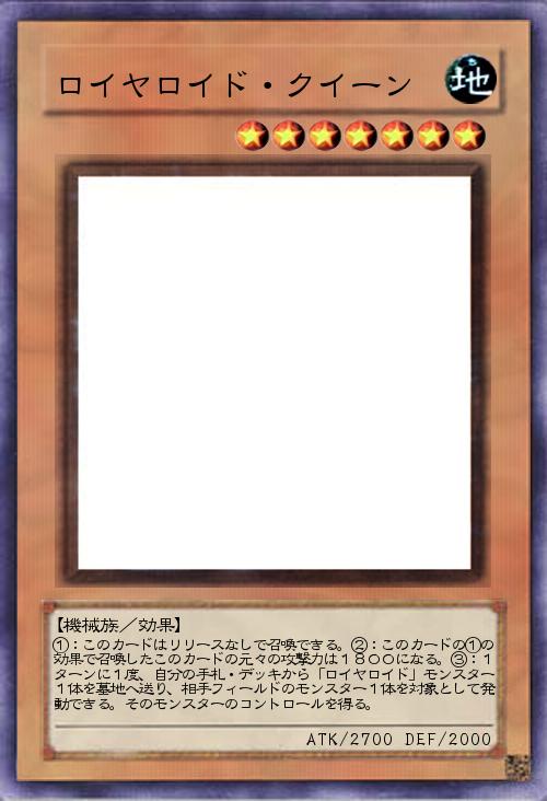 | ①:このカードはリリースなしで召喚できる。②:このカードの①の効果で召喚したこのカードの元々の攻撃力は1800になる。③:1ターンに1度、自分の手札・デッキから「ロイヤロイド」モンスター1体を墓地へ送り、相手フィールドのモンスター1体を対象として発動できる。そのモンスターのコントロールを得る。 | |||