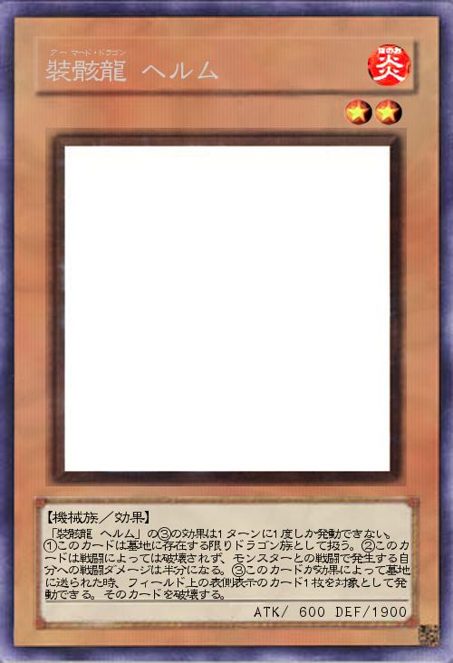 | 「裝骸龍 ヘルム」の③の効果は1ターンに1度しか発動できない。①このカードは墓地に存在する限りドラゴン族として扱う。②このカードは戦闘によっては破壊されず、モンスターとの戦闘で発生する自分への戦闘ダメージは半分になる。③このカードが効果によって墓地に送られた時、フィールド上の表側表示のカード1枚を対象として発動できる。そのカードを破壊する。 | |||