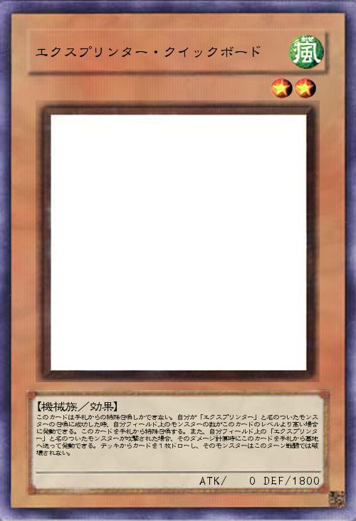 | このカードは手札からの特殊召喚しかできない。自分が「エクスプリンター」と名のついたモンスターの召喚に成功した時、自分フィールド上のモンスターの数がこのカードのレベルより高い場合に発動できる。このカードを手札から特殊召喚する。また、自分フィールド上の「エクスプリンター」と名のついたモンスターが攻撃された場合、そのダメージ計算時にこのカードを手札から墓地へ送って発動できる。デッキからカードを1枚ドローし、そのモンスターはこのターン戦闘では破壊されない。 | |||