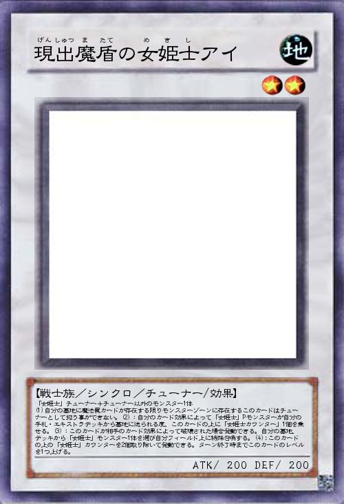 | 「女姫士」チューナー+チューナー以外のモンスター1体 (1)自分の墓地に魔法罠カードが存在する限りモンスターゾーンに存在するこのカードはチューナーとして扱う事ができない。(2):自分のカード効果によって「女姫士」Pモンスターが自分の手札・エキストラデッキから墓地に送られる度、このカードの上に「女姫士カウンター」1個を乗せる。(3):このカードが相手のカード効果によって破壊された場合発動できる。自分の墓地、デッキから「女姫士」モンスター1体を選び自分フィールド上に特殊召喚する。(4):このカードの上の「女姫士」カウンターを2個取り除いて発動できる。ターン終了時までこのカードのレベルを1つ上げる。 | |||