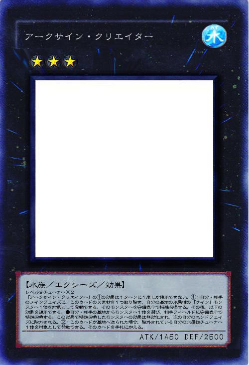 | レベル3チューナー×2 「アークサイン・クリエイター」の①の効果は1ターンに1度しか使用できない。①:自分・相手のメインフェイズに、このカードのX素材を1つ取り除き、自分の墓地の水属性の「サイン」モンスター1体を対象として発動できる。そのモンスターを守備表示で特殊召喚する。その後、以下の効果を適用できる。●自分・相手の墓地からモンスター1体を選び、相手フィールドに守備表示で特殊召喚する。この効果で特殊召喚したモンスターの効果は無効化され、次の自分のエンドフェイズに除外される。②:このカードが墓地へ送られた場合、除外されている自分の水属性チューナー1体を対象として発動できる。そのカードを手札に加える。 | |||