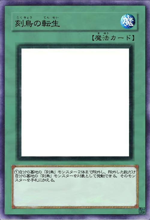 | ①自分の墓地の「刻鳥」モンスター2体まで除外し、除外した数だけ自分の墓地の「刻鳥」モンスターを対象として発動できる。そのモンスターを手札に加える。 | |||