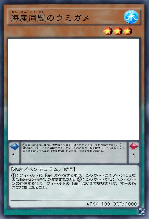 | ①:自分は水族・魚族・海竜族モンスター以外のモンスターをP召喚できない。②:自分エンドフェイズに発動できる。Pゾーンのこのカードを破壊し、デッキからレベル2またはレベル4の「海産同盟」モンスター1体を手札に加える。 | |||