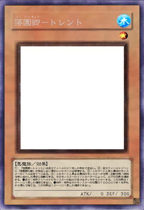 | ①:「落園卿-トレント」は自分フィールドに1枚しか存在できない。②:自分フィールドゾーンに「落園卿の都」が存在しない場合にこのカードは破壊する。③:このカードと同じ属性のモンスターのレベルは全て1になる。④:このカードと異なる属性のモンスターが召喚・反転召喚・特殊召喚に成功した場合に発動できる。そのモンスターのコントローラーによって、以下の効果を適用する。●自分:相手フィールドのモンスターの数だけ自分はデッキからドローする。この効果は1ターンに1度しか適用できない。●相手:相手はそのモンスターの攻撃力1000につき1枚手札から選んで捨てる。この効果は1ターンに1度しか適用できない。 | |||