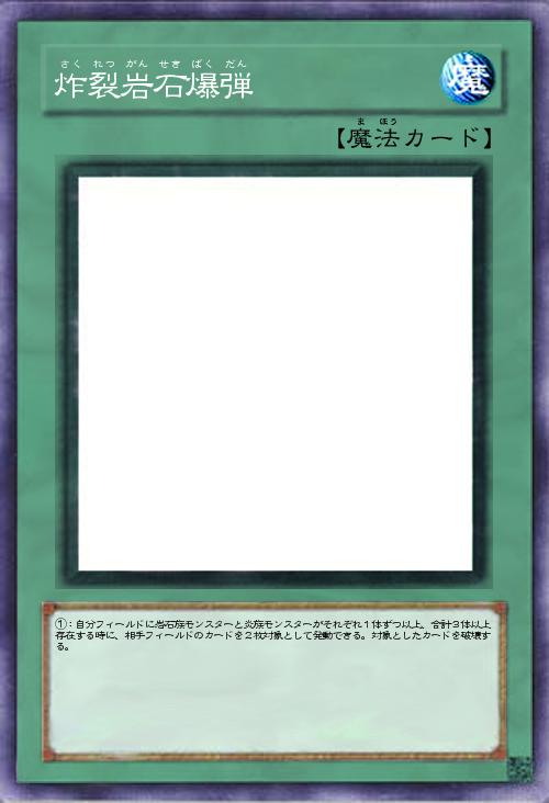 | ①:自分フィールドに岩石族モンスターと炎族モンスターがそれぞれ1体ずつ以上、合計3体以上存在する時に、相手フィールドのカードを2枚対象として発動できる。対象としたカードを破壊する。 | |||
