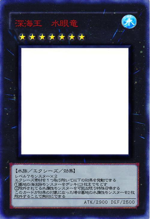 | レベル7モンスター×2 エクシーズ素材を1つ取り除いて以下の効果を発動できる ①墓地の海流族モンスターをデッキに3枚までもどす ②除外されてる水属性モンスターを可能な限り特殊召喚する このカードが効果の対象になった場合墓地の水属性モンスターを2枚除外することで無効にできる | |||