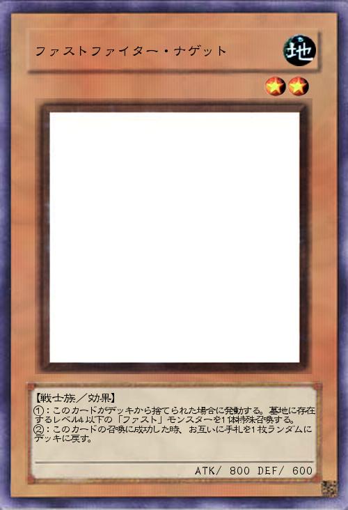| ①:このカードがデッキから捨てられた場合に発動する。墓地に存在するレベル4以下の「ファスト」モンスターを1体特殊召喚する。 ②:このカードの召喚に成功した時、お互いに手札を1枚ランダムにデッキに戻す。 | |||