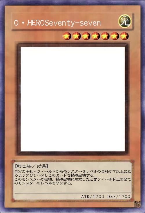 | 自分の手札・フィールドからモンスターをレベルの合計が7以上になるようにリリースしこのカードを特殊召喚する。 このモンスターが召喚、特殊召喚に成功したときフィールド上の全てのモンスターのレベルを7にする。 | |||