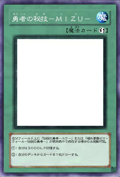 | 自分フィールド上に「伝説の勇者-ユウ-」または「硬氷要塞ゼロ・ウォール-伝説の勇者-」が表側表示で存在する場合のみ発動可能。 ①:自分は3000LP回復する。 ②:自分のデッキからカードを1枚ドローする。 | |||