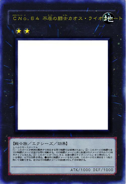 | レベル2モンスター×4 ①:このカードが表側攻撃表示で存在する限り戦闘では破壊されない。②:このカードの戦闘で自分が戦闘ダメージを受ける際に発動する。その戦闘ダメージと同じ数値分のダメージを代わりに相手ライフに与える。③:このカードが「No.54 反骨の闘士ライオンハート」をX素材にしている場合、以下の効果を得る。●相手に戦闘ダメージを与えた時、このカードのX素材を1つ取り除いて発動できる。自分はその戦闘ダメージの数値分のLPを回復する。 | |||