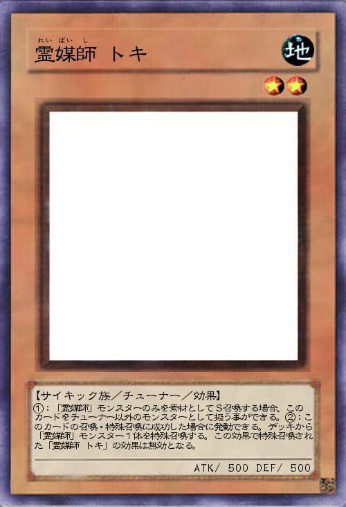 | ①:「霊媒師」モンスターのみを素材としてS召喚する場合、この カードをチューナー以外のモンスターとして扱う事ができる。②:このカードの召喚・特殊召喚に成功した場合に発動できる。デッキから「霊媒師」モンスター1体を特殊召喚する。この効果で特殊召喚された「霊媒師 トキ」の効果は無効となる。 | |||