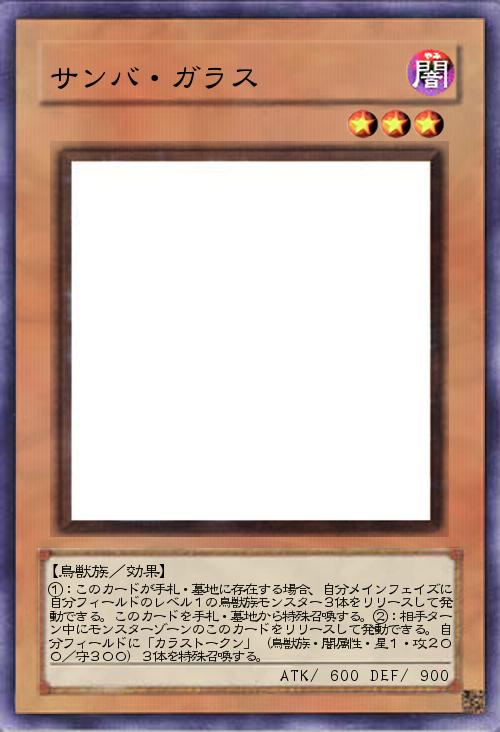 | ①:このカードが手札・墓地に存在する場合、自分メインフェイズに自分フィールドのレベル1の鳥獣族モンスター3体をリリースして発動できる。このカードを手札・墓地から特殊召喚する。②:相手ターン中にモンスターゾーンのこのカードをリリースして発動できる。自分フィールドに「カラストークン」(鳥獣族・闇属性・星1・攻200/守300)3体を特殊召喚する。 | |||