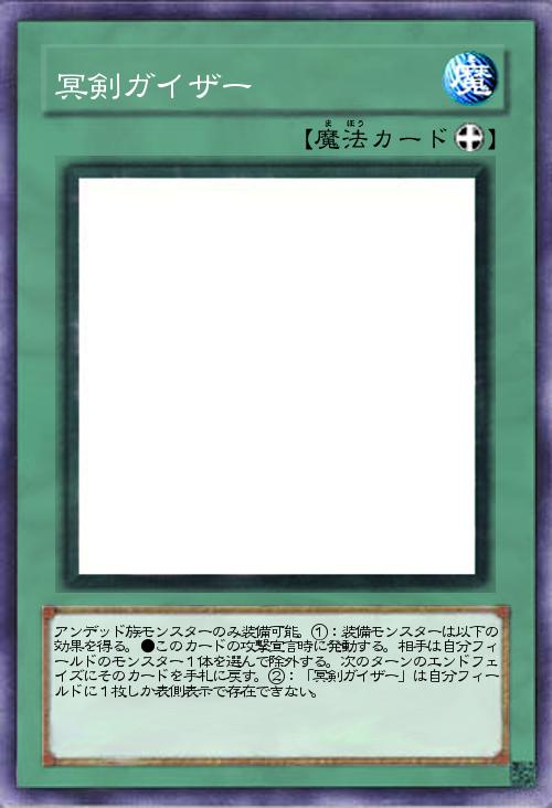 | アンデッド族モンスターのみ装備可能。①:装備モンスターは以下の効果を得る。●このカードの攻撃宣言時に発動する。相手は自分フィールドのモンスター1体を選んで除外する。次のターンのエンドフェイズにそのカードを手札に戻す。②:「冥剣ガイザー」は自分フィールドに1枚しか表側表示で存在できない。 | |||