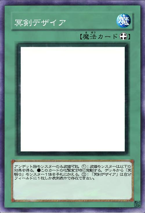 | アンデット族モンスターのみ装備可能。①:装備モンスターは以下の効果を得る。●このカードの攻撃宣言時に発動する。デッキから「冥騎士」モンスター1体を手札に加える。②:「冥剣デザイア」は自分フィールドに1枚しか表側表示で存在できない。 | |||