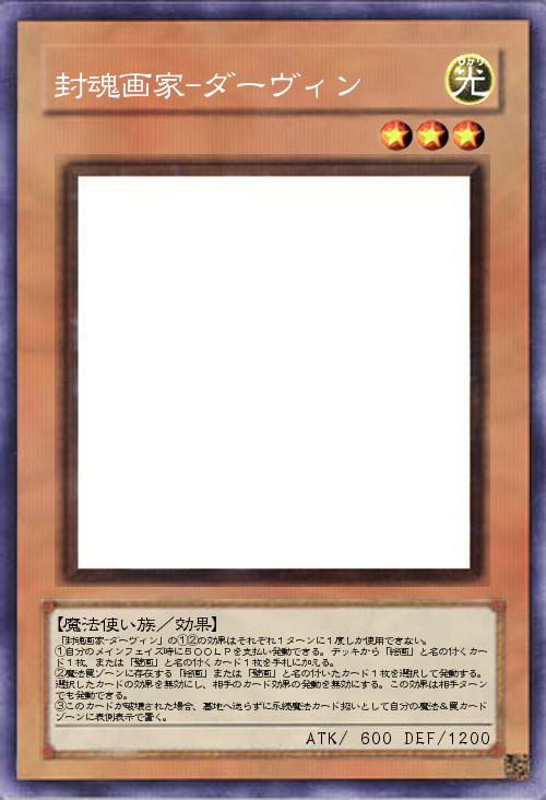 | 「封魂画家-ダーヴィン」の①②の効果はそれぞれ1ターンに1度しか使用できない。 ①自分のメインフェイズ時に500LPを支払い発動できる。デッキから「絵画」と名の付くカード1枚、または「壁画」と名の付くカード1枚を手札に加える。 ②魔法罠ゾーンに存在する「絵画」または「壁画」と名の付いたカード1枚を選択して発動する。選択したカードの効果を無効にし、相手のカード効果の発動を無効にする。この効果は相手ターンでも発動できる。 ③このカードが破壊された場合、墓地へ送らずに永続魔法カード扱いとして自分の魔法&罠カードゾーンに表側表示で置く。 | |||