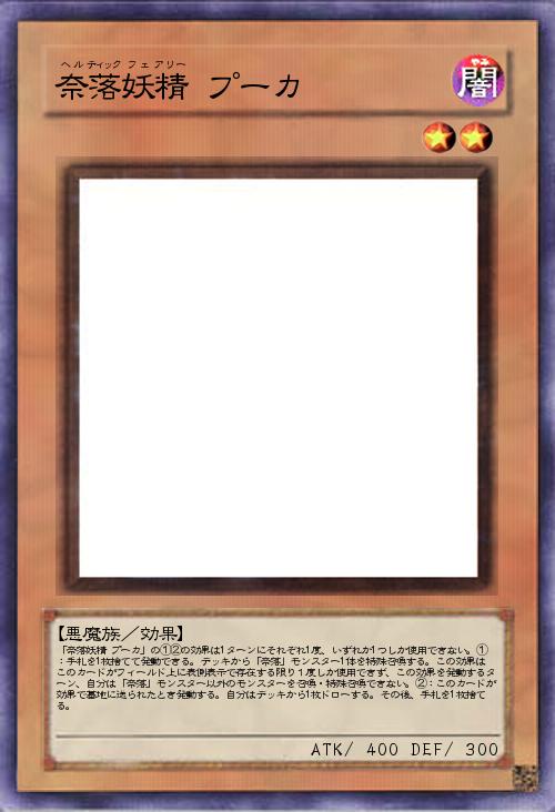 | 「奈落妖精 プーカ」の①②の効果は1ターンにそれぞれ1度、いずれか1つしか使用できない。①:手札を1枚捨てて発動できる。デッキから「奈落」モンスター1体を特殊召喚する。この効果はこのカードがフィールド上に表側表示で存在する限り1度しか使用できず、この効果を発動するターン、自分は「奈落」モンスター以外のモンスターを召喚・特殊召喚できない。②:このカードが効果で墓地に送られたとき発動する。自分はデッキから1枚ドローする。その後、手札を1枚捨てる。 | |||
