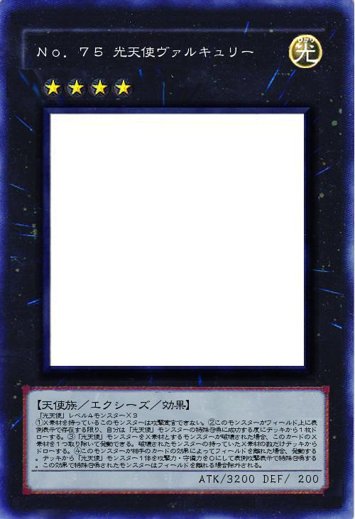 | 「光天使」レベル4モンスター×3 ①X素材を持っているこのモンスターは攻撃宣言できない。②このモンスターがフィールド上に表側表示で存在する限り、自分は「光天使」モンスターの特殊召喚に成功する度にデッキから1枚ドローする。③「光天使」モンスターをX素材とするモンスターが破壊された場合、このカードのX素材を1つ取り除いて発動できる。破壊されたモンスターの持っていたX素材の数だけデッキからドローする。④このモンスターが相手のカードの効果によってフィールドを離れた場合、発動する。デッキから「光天使」モンスター1体を攻撃力・守備力を0にして表側攻撃表示で特殊召喚する。この効果で特殊召喚されたモンスターはフィールドを離れる場合除外される。 | |||