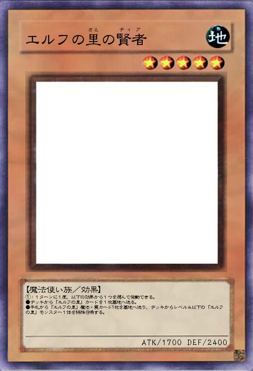 | ①:1ターンに1度、以下の効果から1つを選んで発動できる。 ●デッキから「エルフの里」カードを1枚墓地へ送る。 ●手札から「エルフの里」魔法・罠カード1枚を墓地へ送り、デッキからレベル4以下の「エルフの里」モンスター1体を特殊召喚する。 | |||