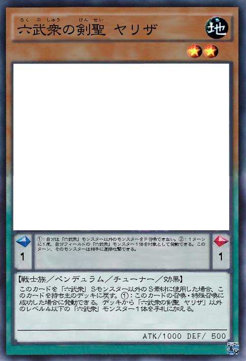「六武衆の新たなる進化。Pモンスターになりました。初めはみんな大好きヤリザ殿。元のとは比べ物にならないほど強化されてる感(ぁ。影武者さんの居場所が危ない。地味に元ヤリザに荒行でシエン出せます。」(2015-11-03 19:30)