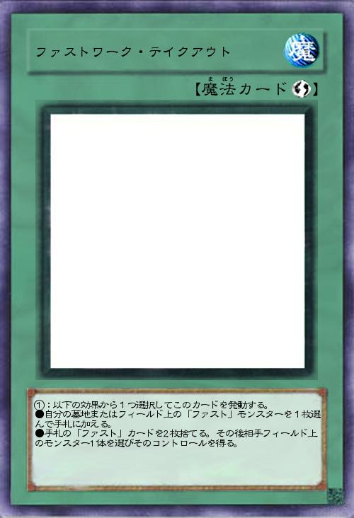| ①:以下の効果から1つ選択してこのカードを発動する。 ●自分の墓地またはフィールド上の「ファスト」モンスターを1枚選んで手札に加える。 ●手札の「ファスト」カードを2枚捨てる。その後相手フィールド上のモンスター1体を選びそのコントロールを得る。 | |||