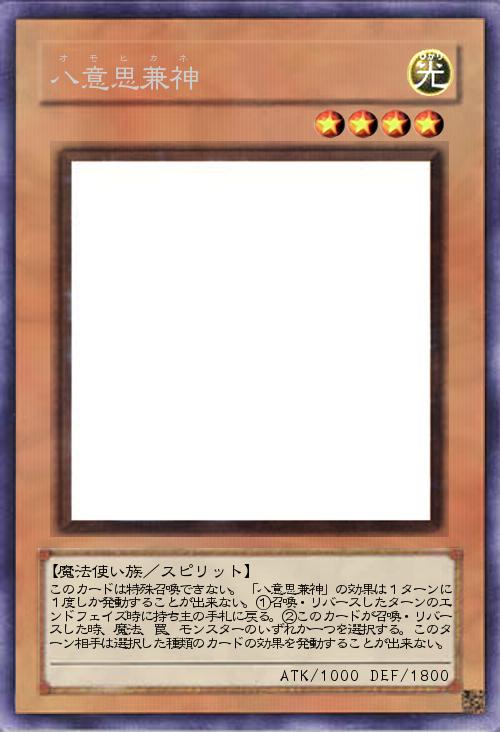 | このカードは特殊召喚できない。「八意思兼神」の効果は1ターンに1度しか発動することが出来ない。①召喚・リバースしたターンのエンドフェイズ時に持ち主の手札に戻る。②このカードが召喚・リバースした時、魔法、罠、モンスターのいずれか一つを選択する。このターン相手は選択した種類のカードの効果を発動することが出来ない。 | |||