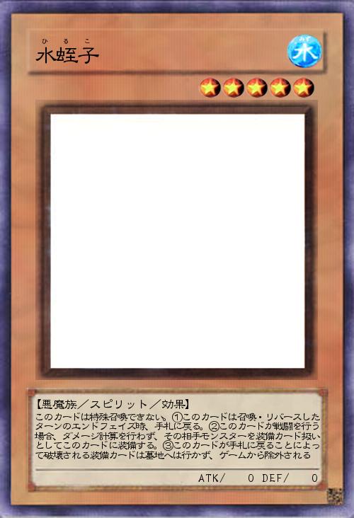 | このカードは特殊召喚できない。①このカードは召喚・リバースしたターンのエンドフェイズ時、手札に戻る。②このカードが戦闘を行う場合、ダメージ計算を行わず、その相手モンスターを装備カード扱いとしてこのカードに装備する。③このカードが手札に戻ることによって破壊される装備カードは墓地へは行かず、ゲームから除外される | |||