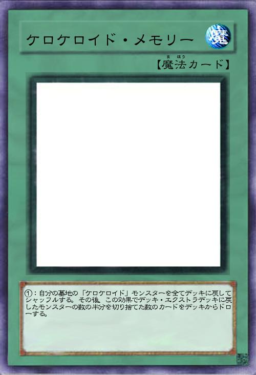 | ①:自分の墓地の「ケロケロイド」モンスターを全てデッキに戻してシャッフルする。その後、この効果でデッキ・エクストラデッキに戻したモンスターの数の半分を切り捨てた数のカードをデッキからドローする。 | |||