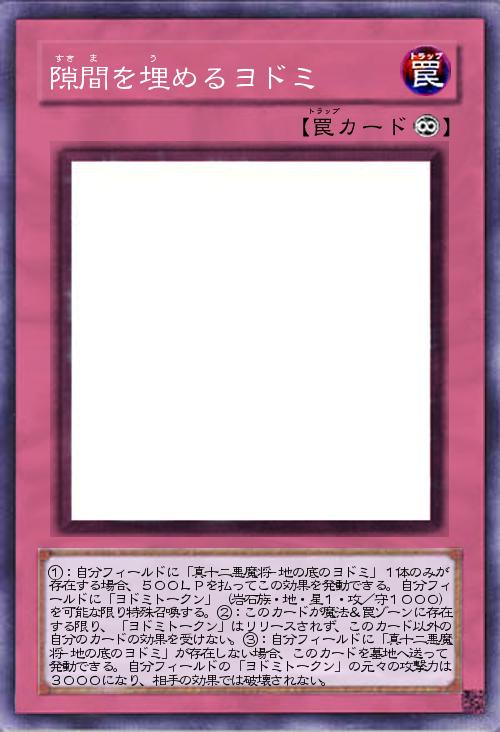 | ①:自分フィールドに「真十二悪魔将-地の底のヨドミ」1体のみが存在する場合、500LPを払ってこの効果を発動できる。自分フィールドに「ヨドミトークン」(岩石族・地・星1・攻/守1000)を可能な限り特殊召喚する。②:このカードが魔法&罠ゾーンに存在する限り、「ヨドミトークン」はリリースされず、このカード以外の自分のカードの効果を受けない。③:自分フィールドに「真十二悪魔将-地の底のヨドミ」が存在しない場合、このカードを墓地へ送って発動できる。自分フィールドの「ヨドミトークン」の元々の攻撃力は3000になり、相手の効果では破壊されない。 | |||