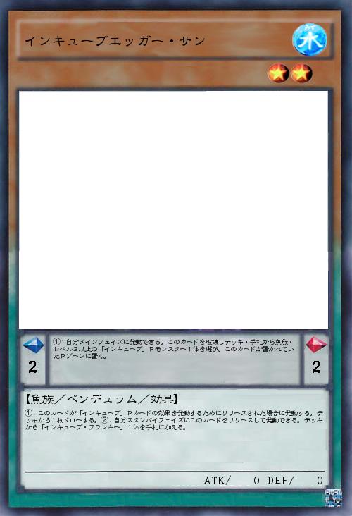 | ①:自分メインフェイズに発動できる。このカードを破壊しデッキ・手札から魚族・レベル3以上の「インキューブ」Pモンスター1体を選び、このカードが置かれていたPゾーンに置く。 | |||