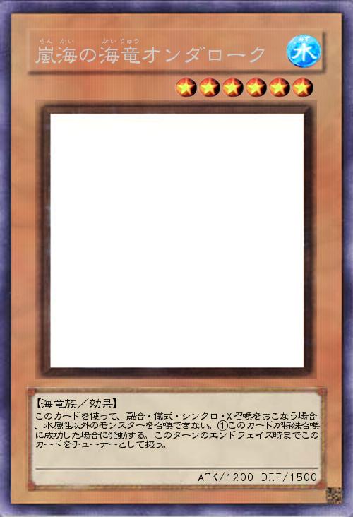 「「嵐海」の4枚目です。前回は諸事情で説明をすっぽかしたので、今回はしっかり説明していきます。とは言っても、「特殊召喚したら水属性用チューナーです。」としか言いようがないです。まぁ、それ以外にも水属性縛りがありますが・・・。「嵐海の海女」達と組み合わせればランク6Xだったりレベル12だったりとシンクロ繋げられるのでなかなか重宝するカードだと思います。(これから徐々にいろいろ出てきます。)」(2015-11-11 23:20)