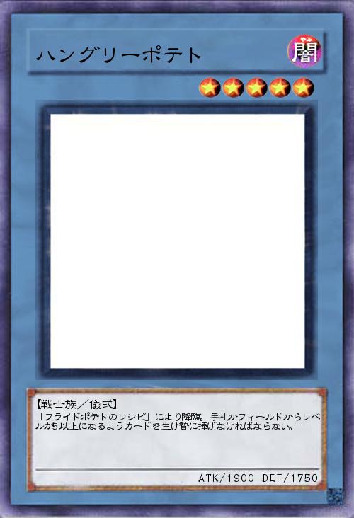 | 「フライドポテトのレシピ」により降臨。手札かフィールドからレベルが5以上になるようカードを生け贄に捧げなければならない。 | |||