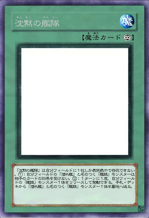 | 「沈黙の艦隊」は自分フィールドに1枚しか表側表示で存在できない。①:自分フィールドの「潜水艦」と名のつく「艦娘」モンスターは相手のカードの効果を受けない。②:1ターンに1度、自分フィールドの「艦娘」モンスター1体をリリースして発動できる。手札・デッキから「潜水艦」と名のつく「艦娘」モンスター1体を墓地へ送る。 | |||
