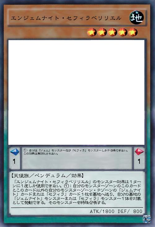 | 「エンジェムナイト・セフィラベリリエル」のモンスター効果は1ターンに1度しか使用できない。①:自分のモンスターゾーンのこのカードとこのカード以外の自分のモンスターゾーン・Pゾーンの「ジェムナイト」カードまたは「セフィラ」カード1枚を墓地へ送り、自分の墓地の「ジェムナイト」モンスターまたは「セフィラ」モンスター1体を対象として発動できる。そのモンスターを特殊召喚する。 | |||