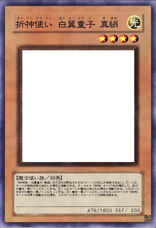 | 「折神使い 白翼童子 真絹」の①②の効果はそれぞれ1ターンに1回しか使用できない。①:このカードが特殊召喚に成功した場合に発動できる。デッキから「折神」カード1枚を選択して、自分の魔法・罠ゾーンにセットする。②:このカードが墓地に送られた場合に発動できる。このカードを自分の魔法・罠ゾーンにセットする。③:魔法・罠ゾーンにセットされたこのカードが「折神」カードの効果で発動された場合、このカードをモンスターゾーンに特殊召喚する。 | |||