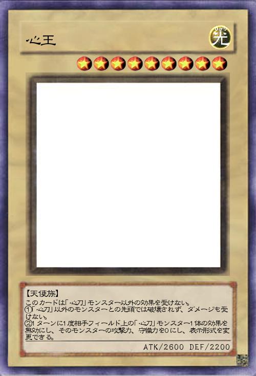 | このカードは「心刀」モンスター以外の効果を受けない。 ①「心刀」以外のモンスターとの先頭では破壊されず、ダメージも受けない。 ②1ターンに1度相手フィールド上の「心刀」モンスター1体の効果を無効にし、そのモンスターの攻撃力、守備力を0にし、表示形式を変更できる。 | |||