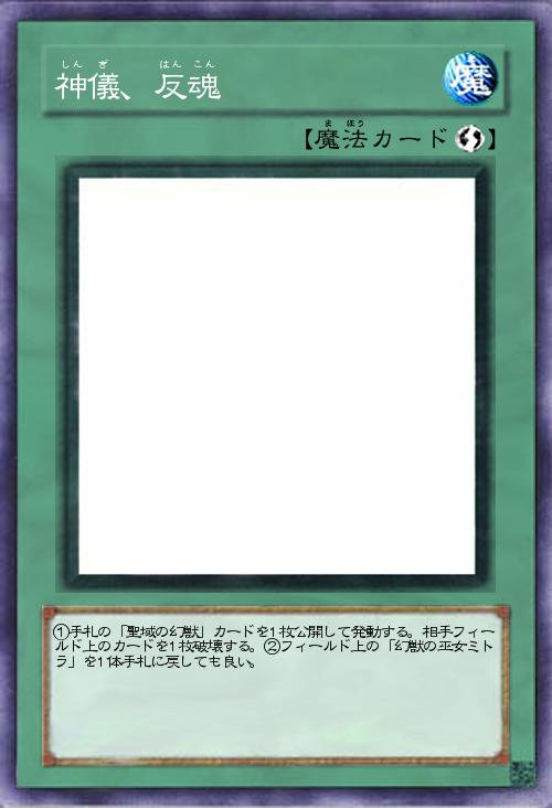 | ①手札の「聖域の幻獣」カードを1枚公開して発動する。相手フィールド上のカードを1枚破壊する。②フィールド上の「幻獣の巫女ミトラ」を1体手札に戻しても良い。 | |||