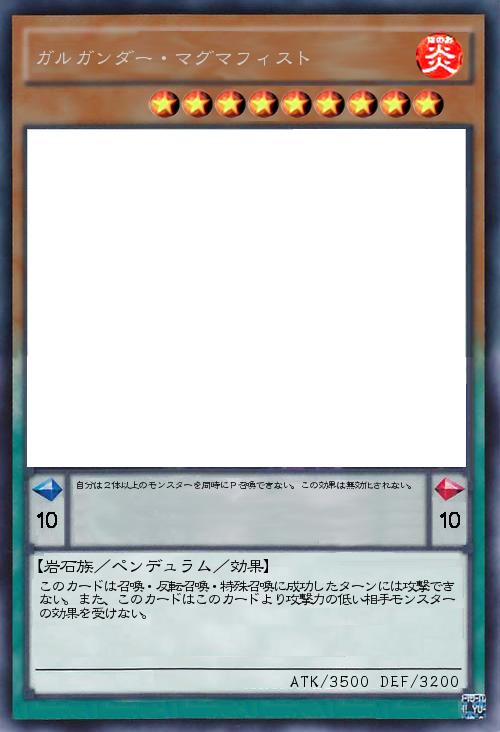 溶岩の拳。ガルガンダーを象徴するようなステータスや効果を持つモンスター。スケール4のカードと併用すると絶望的な倒されにくさになります。ただしホープ(ry