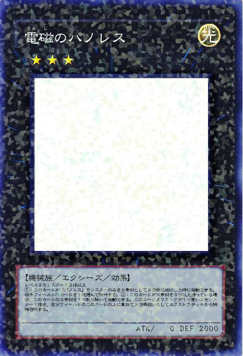 | レベル3モンスター×2体以上 ①:このカードが「パノレス」モンスターのみをX素材としてX召喚に成功した時に発動できる。相手フィールドのカードを1枚選んで除外する。②:このカードがX素材を3つ以上持っている場合、このカードのX素材を1つ取り除いて発動できる。このカードよりランクが1つ高いXモンスター1体を、自分フィールドのこのカードの上に重ねてX召喚扱いとしてエクストラデッキから特殊召喚する。 | |||