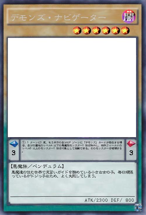 | ①:1ターンに1度、もう片方の自分のPゾーンに「デモンズ」カードが存在する場合、自分の墓地のレベル4以下の悪魔族モンスター1体を除外し、相手フィールドのレベル6以上のモンスター1体を対象として発動できる。そのモンスターを破壊する。 | |||